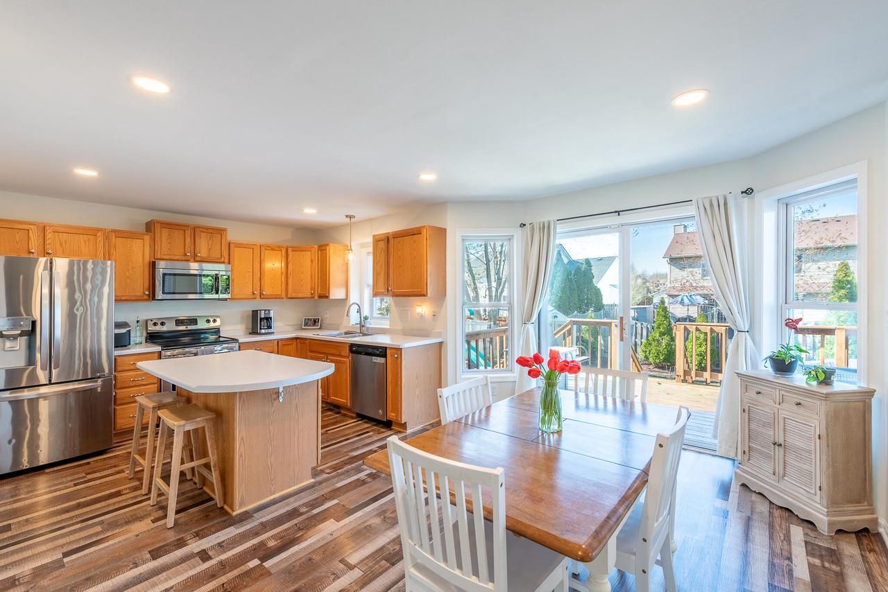 Spacious 4-bedroom, 3.5-bath home in desirable Pleasant Prairie--ideal for commuters! Offering 2,500 sq ft of living space, this home features an open-concept layout with a large living room and cozy fireplace. The eat-in kitchen boasts a large island, new walk-in pantry, and stainless steel appliances. Main level includes a versatile bonus room perfect for an office, dining room, or playroom. Enjoy outdoor living on the large deck overlooking a fenced yard with an above-ground pool and playset. Upstairs offers 4 bedrooms and updated bathroom, including a primary suite with tray ceilings and great walk in closet. Finished basement provides extra living space plus ample storage. Located in Prairie Lane Elementary district, recently named a Blue Ribbon School.