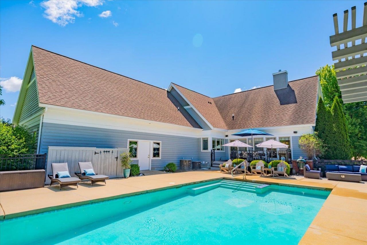 Waunakee Schools-Discover this exceptional 2-story custom home by architect E. Edward Linville, located in the charming Equestrian community of Carriage Ridge. Enjoy a contemporary layout featuring soaring cathedral ceilings and exquisite custom finishes. The striking two-way stone fireplace beautifully links the modern living and dining areas to the gourmet kitchen and breakfast nook. The main level boasts a private and spacious owner's suite, while the upstairs hosts two additional bedrooms with baths and a cozy lofted sitting area. Outside, entertain in style with a beautiful private in-ground salt water pool, expansive deck, and fire pit. This remarkable home is a must-see! Low Westport Taxes. Miles of beautiful walking trails thought out the subdivision.