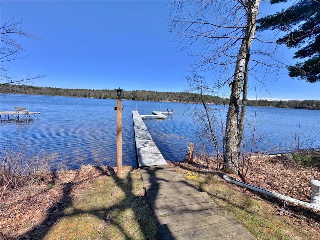 Lac Courte Oreilles-Exceptional estate property with 10.8 acres and a total of 320 feet of level sandy shoreline on one of the Hayward area's most treasured lakes. Enter through the paved drive and lighted stone pillars to discover a setting that feels both private and memorable. As the drive winds through the property, it leads to the 4BR/2.5BA main home at the lakeshore. Positioned on 200 feet of frontage with beautiful sandy shoreline for swimming and waterfront enjoyment, the extensively remodeled home offers open living spaces with a warm, inviting feel, a spacious kitchen with custom tin-wrapped island and ample storage, dining area with a wall of windows overlooking the lake, living room with gorgeous stone fireplace (1 of 4), and a luxurious main-floor primary suite with fireplace, sunroom, spacious bath, walk-in closet, and laundry. The lower level offers comfortable private guest spaces including a family room with gas fireplace, 3 bedrooms, full bath, and a wine room with wet bar and mini-fridge. With a full renovation in 2017, the main home pairs beautifully with the guest home built that same year and situated just steps away, yet on its own legal lot. The delightful 2BR+loft/2BA guest home is ideal for family and guests, with one private suite, a second bedroom with adjacent bath, loft with 4 twin beds, and laundry in the large unfinished basement. Exterior features include an attached (to main home) 2-car garage with sauna and laundry, detached 2-car garage, 36x36 outbuilding, gazebo, storage shed, composite decks, two generators, irrigation, and a new stone lakeside firepit. The adjoining 2.64-acre lot with 118 feet of shoreline offers valuable long-term options, as does the separate 2+ acre off-water lot across Hwy K. The combination of parcels and improvements supports continued use as a family compound while offering future possibilities. Most furnishings are available for purchase separately, allowing for a largely turn-key opportunity.